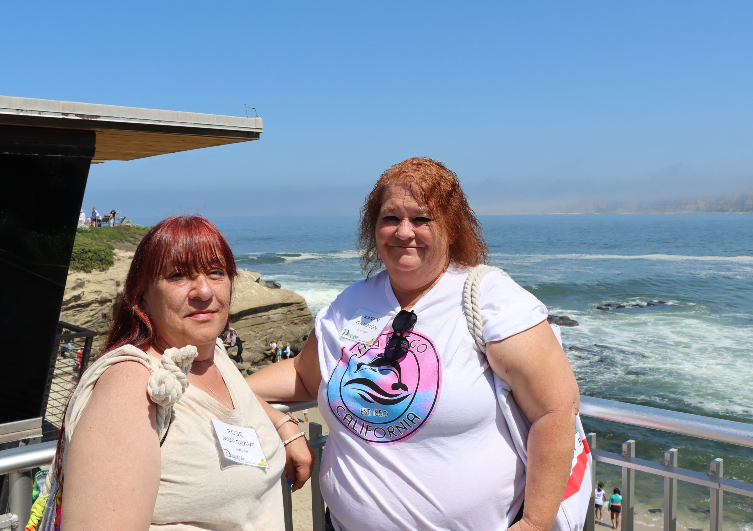 In the photos above (from left to right), Rose (pictured with her friend) saw the ocean for the first time in her life during her trip to San Diego; she enjoyed the ANCOR Connect ’25 conference; and she met Dungarvin VP of Operations and Executive Regional Director Patrick Brendle and East Regional Director Julie Josephitis.